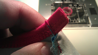 Jag klipper bort det ena kantbandet nära sömmen ( jag gör likadant om jag använt tunn interlock).